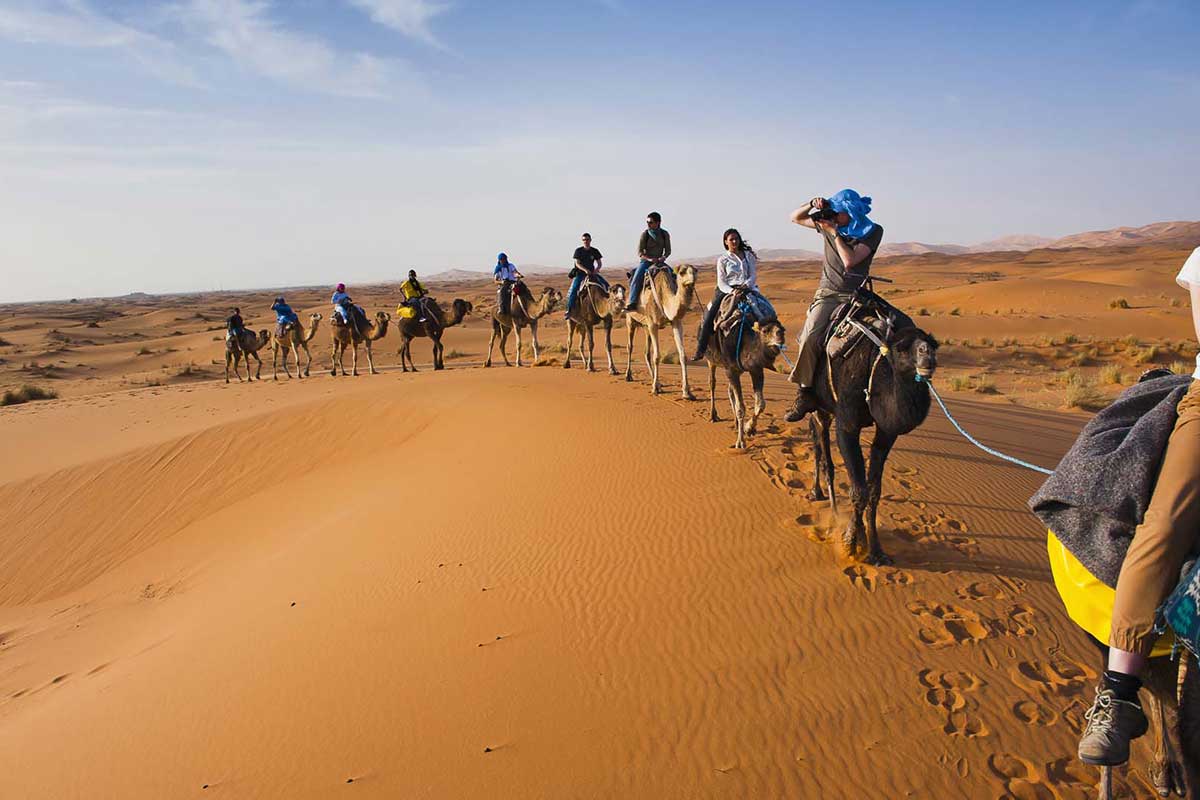 Explore the dunes, watch the sunset on a camel and spend the night in a nomadic tent ⛺️ or under the stars.