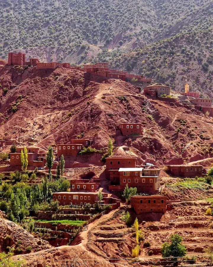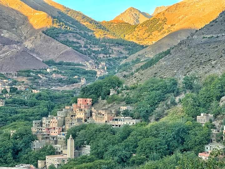 Departure towards Imlil, passing through the Tizi Mzik pass 2450 m, a visit to a small summit of 2650 m to dominate the Azzaden valley, Ait Mizane valley and the western Atlas range. Descent towards a forest called Bardon, lunch next to a source, then continuing the descent towards the center of Imlil, visit of the Imlil center, then transfer to Marrakech. 5 hours of walking. +350 and – – 900 m altitude difference. End of the hike.