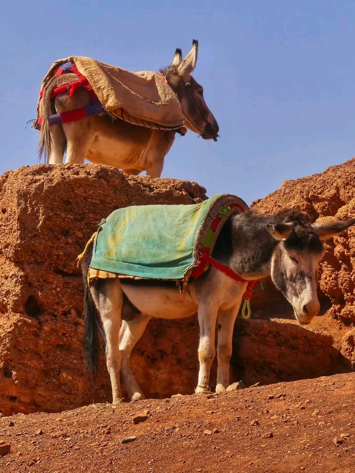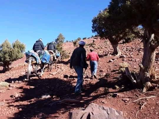 Departure from Marrakech in the morning towards Imi Oughlad, meet our local mule teams, then loading our luggage on the mules, continue our walk towards id Aissa, passing through several villages with Berber architecture, a forest of juniper trees, then a 1950 pass m altitude. Lunch after the pass. Night at the stopover lodge at Aid Aïssa 1830 m. 4 hours of walking. +300 DM and – 200 m DD.