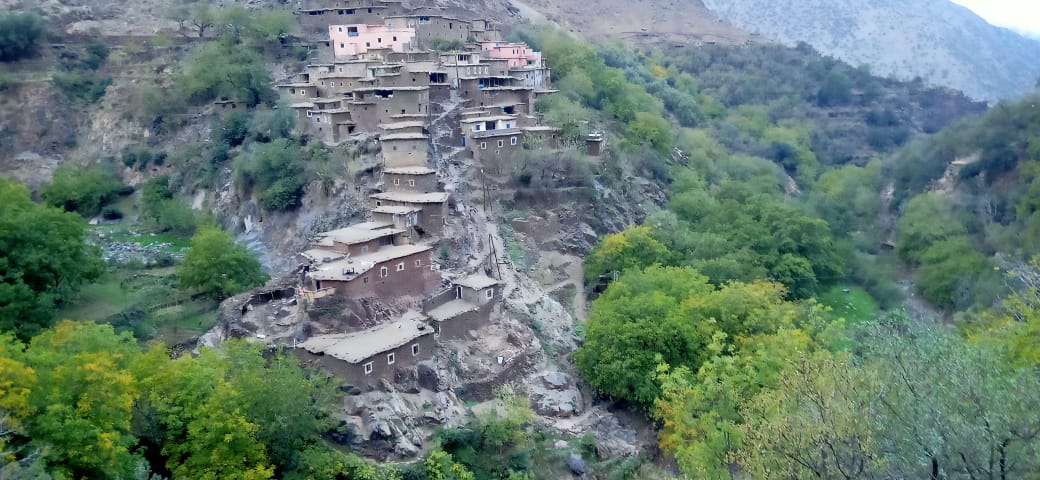 Departure towards Imlil, passing through the Tizi Mzik pass 2450 m, a visit to a small summit of 2650 m to dominate the Azzaden valley, Ait Mizane valley and the western Atlas range. Descent towards a forest called Bardon, lunch next to a source, then continuing the descent towards the center of Imlil, visit of the Imlil center, then transfer to Marrakech. 5 hours of walking. +350 and – – 900 m altitude difference. End of the hike.
